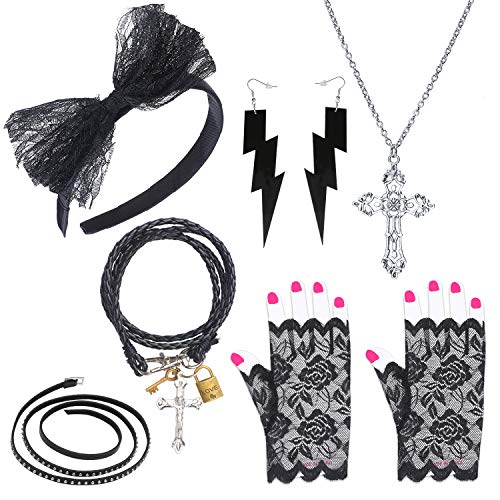 80s fancy dress costume accessories, neon bracelets neon bead necklaces lace bow headband long fishnet gloves leg warmer set for 1980s party dress party costume accessories. White fingerless short lace gloves fancy dress french maid madonna 80s. We've got gloves, wigs, skinny ties & more great 80s accessories for you to complete your 80s attire! Madonna fashion through the years. Ebay, walmart, target, sears, asos, spitit halloween, costume express, costume craze, party city, oriental trading, yandy, halloween express, smiffys.